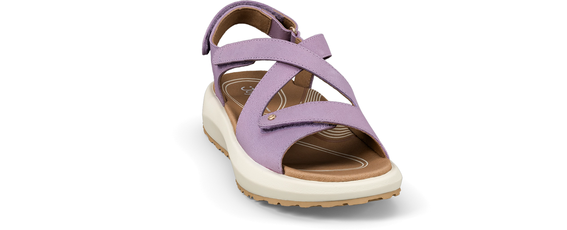 Jenny light purple ist eine Cross-Strap-Sandale aus geschmeidigem Nubukleder mit elegantem Look. Die verstellbaren Riemen sorgen für eine Passform, die sich einfach an deinen Fuss anpassen lässt und den ganzen Tag angenehm sitzt. Die Joya Senso Sohlentechnologie dämpft jeden Schritt, verteilt den Druck gleichmässig und entlastet Rücken, Gelenke und Füsse spürbar.