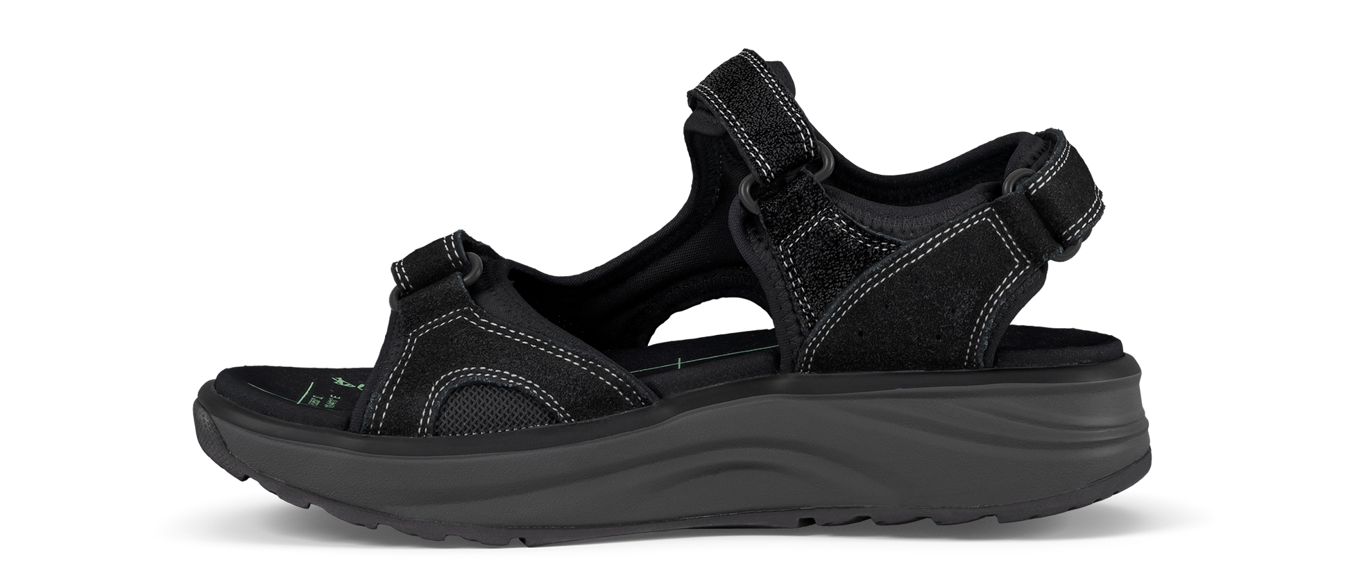 Outdoor-Sandale aus Veloursleder und Mesh mit weich gepolstertem Neoprenfutter sowie verstellbaren Klettverschlüssen an Ferse, Spann und Vorderfuss. Das ergonomische Fussbett ist mit weicher, samtiger Mikrofaser umhüllt und sorgt für angenehmen Tragekomfort. Die integrierte Joya Active Sohlentechnologie bietet eine ausgewogene Kombination aus Dämpfung, Rückfederung und Stabilität – ideal für dynamische Menschen, die viel unterwegs sind und auch in Bewegung nicht auf Komfort verzichten möchten.