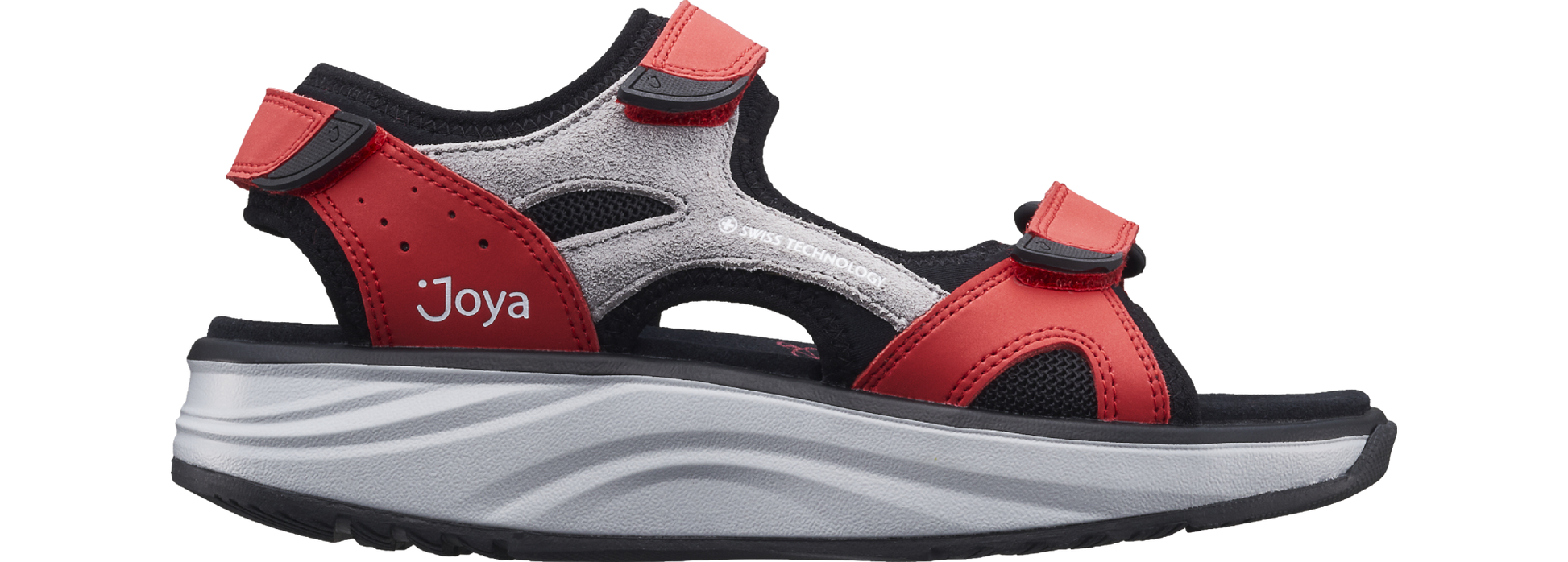 Outdoor-Sandale aus Leder und Mesh mit weich gepolstertem Neoprenfutter und verstellbaren Klettverschlüssen an Ferse, Rist und Vorderfuß. Ausgestattet mit einem ergonomischen Fußbett, umhüllt von weicher, samtiger Mikrofaser. Ausgestattet mit der Joya Active Sohlentechnologie, die eine ideale Kombination aus Dämpfung, Rückfederung und Stabilität garantiert. Für dynamische Menschen, die immer in Bewegung sind und Komfort in Aktion und Leistung auf jedem Untergrund brauchen.