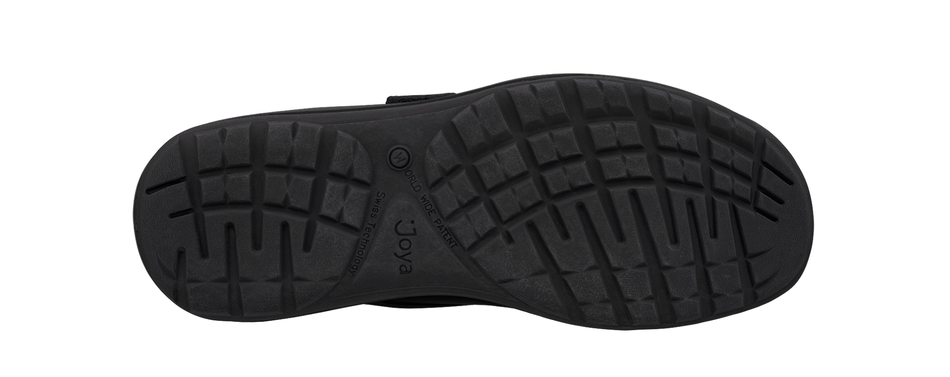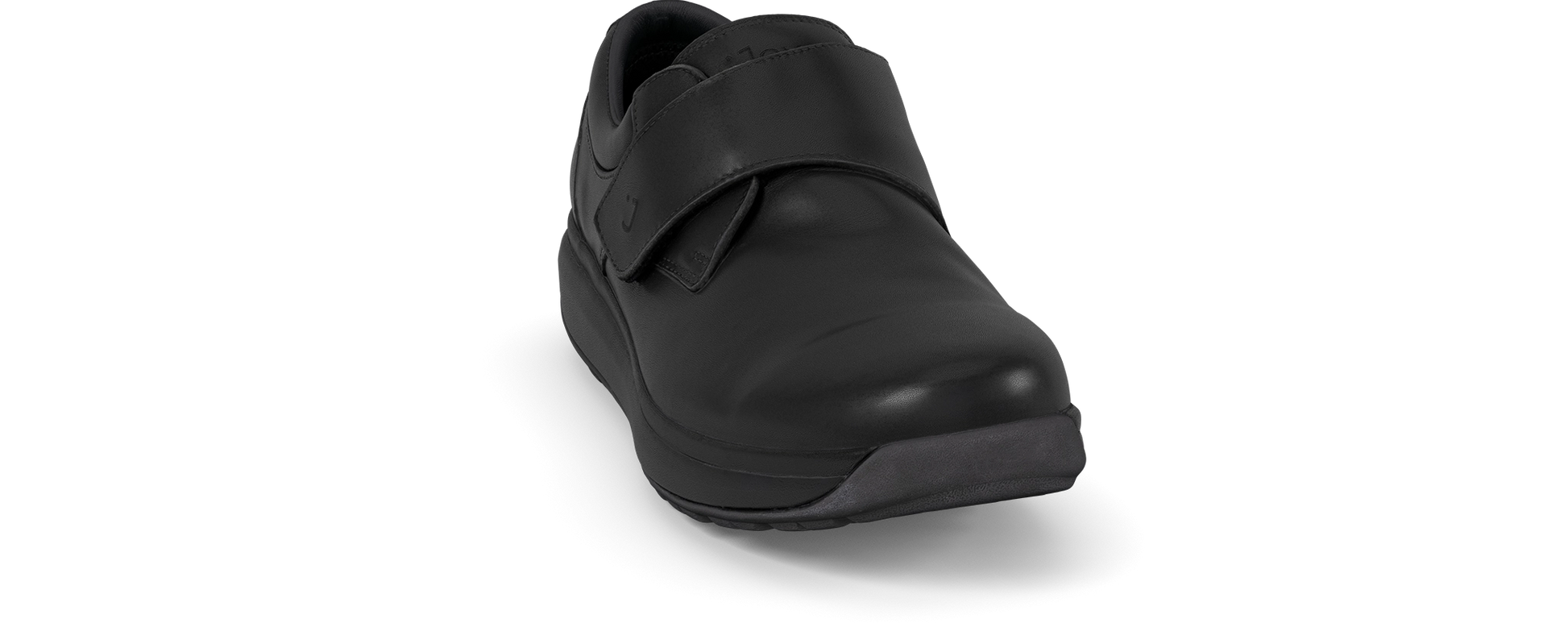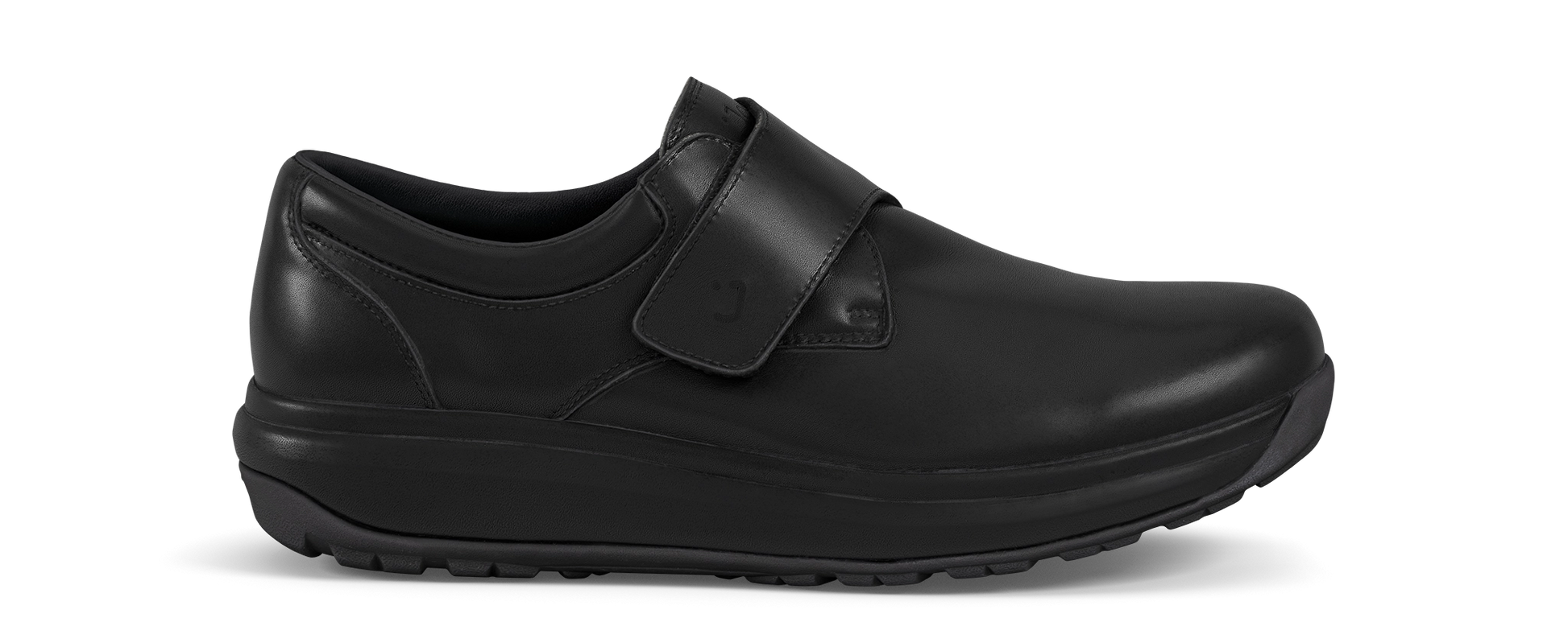 Full grain leather derby shoes with instep velcro closure, plain toe and smoothly padded mesh lining for superlative forefoot comfort. Featured with the Joya Senso sole technology that ensures excellent cushioning effect and balanced pressure distribution and delivers optimum comfort and relief for your back, joints and feet daily stress.