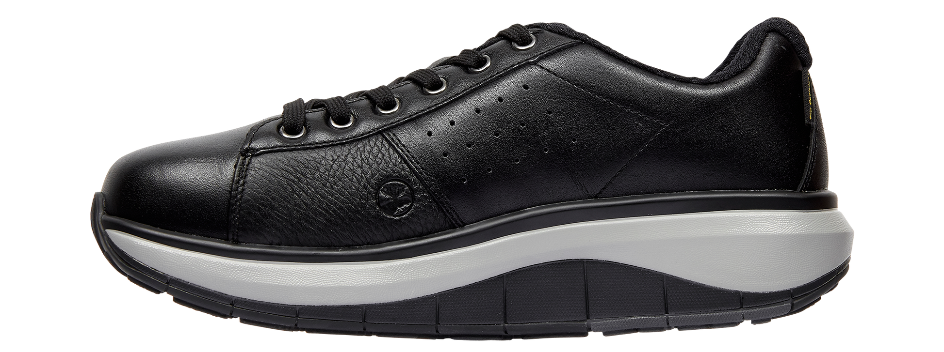 Sneaker aus Vollnarben und Elchleder. Einzigartig an diesem Stil sind Elche-Lederstücke im Vorfussbereich. Elchleder ist als elastisches und weiches Material bekannt, das den Sitzkomfort besonders für Personen mit einem breiten empfindlichen Vorfussbereich erhöht. Hat eine weiche Joya Wave-Sohle mit einem extra breiten System, das die Anpassung des Schuhs von normaler zu breiter Passform ermöglicht und die Kombination mit orthetischen Einlagen ermöglicht. Ideal für Menschen mit spezifischen Passanforderungen.