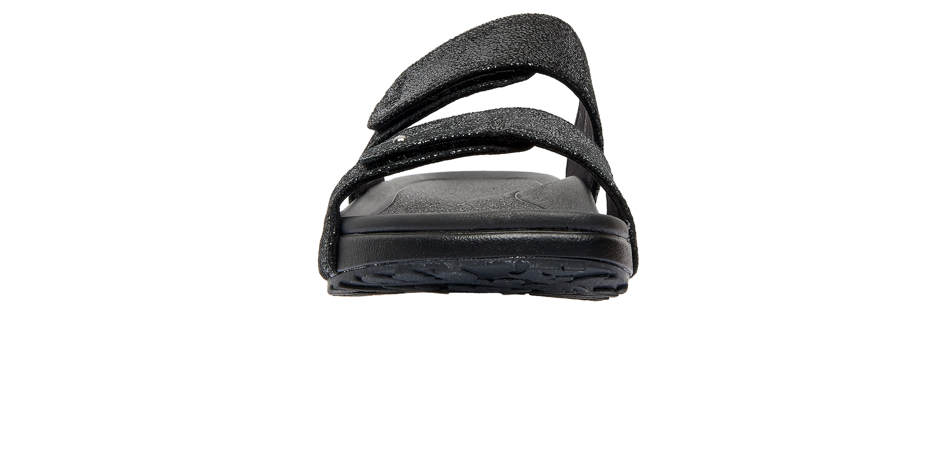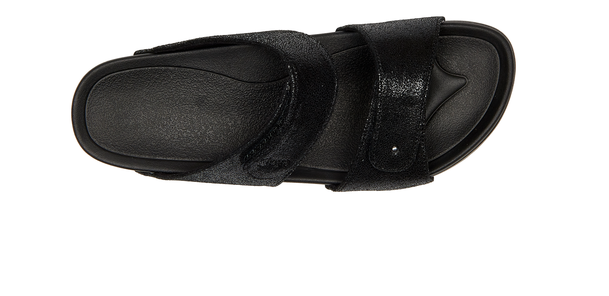 Hausschuhe aus funkelndem Spaltleder und weichem Textilfutter. Verstellbare Klettbänder sorgen für eine optimale Passform. Diese Technologie verfügt über ein weiches Fussbett und eine breite, weiche Sohle, die für Stabilität und Dämpfung sorgt. Geeignet für Menschen mit empfindlichem Rücken und mit Füssen und Gelenken, die täglicher Belastung ausgesetzt sind.