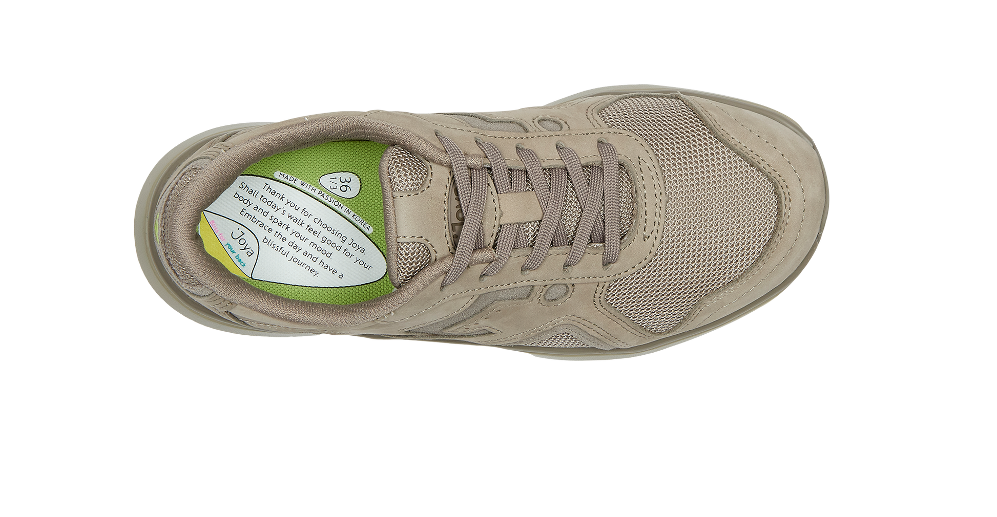 Sportlicher Sneaker aus Nubuk und atmungsaktivem Mesh. Hat eine weiche Joya Wave-Sohle mit einem extra breiten System, das die Anpassung des Schuhs von normaler zu breiter Passform ermöglicht und die Kombination mit orthetischen Einlagen ermöglicht. Ideal für Menschen mit spezifischen Passanforderungen.